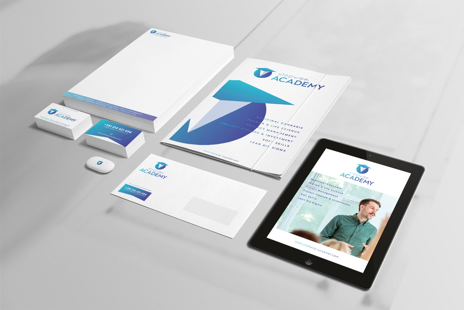 Neste projeto foi desenvolvida uma imagem gráfica que fosse ao encontro do objetivo da Stepwise®Academy, uma formação de excelência no setor farmacêutico; de forma simples e objetiva chegamos à nova imagem gráfica, limpa e moderna. Desejo de muito sucesso.